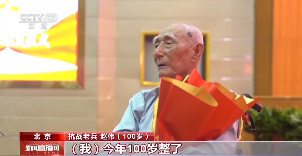 抗戰(zhàn)老兵 趙偉(100歲):我今年100歲了,8月15日就是100歲,國家又給我一個(gè)生日禮物。