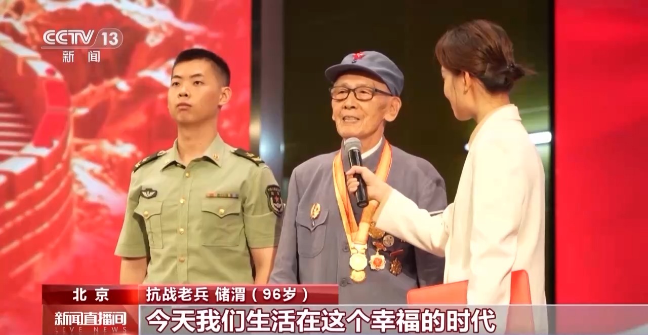 抗戰(zhàn)老兵 儲(chǔ)渭(96歲):我當(dāng)兵的時(shí)候不到15歲,現(xiàn)在老戰(zhàn)友已經(jīng)不太多了。經(jīng)歷了14年的抗日戰(zhàn)爭,今天我們生活在幸福的時(shí)代,這是黨的關(guān)懷,這是我們不能忘記的。