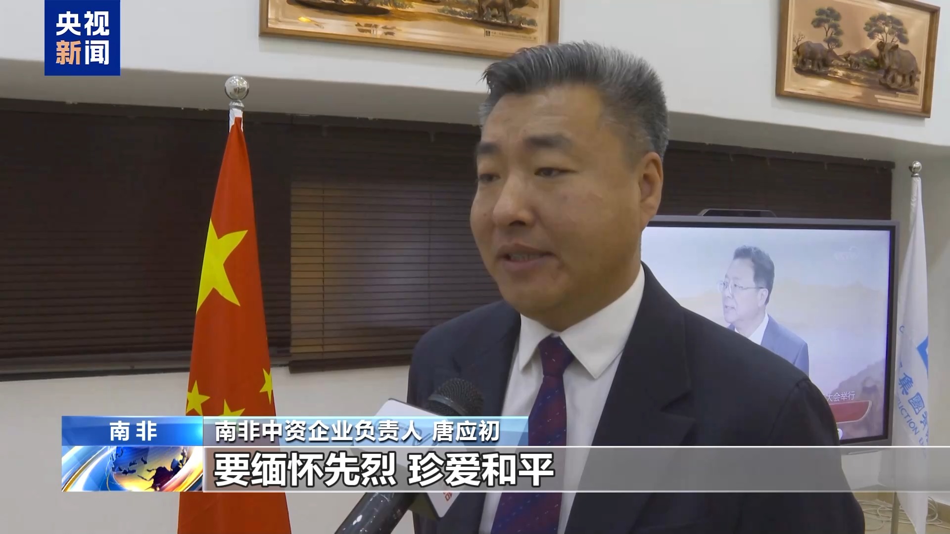 南非中資企業(yè)負(fù)責(zé)人 唐應(yīng)初:歷史告訴我們要緬懷先烈、珍愛和平。只有團結(jié)才能勝利,只有合作才能共贏。作為海外建設(shè)者,今天我們胸懷祖國,奮戰(zhàn)一線。用實際行動證明,中國建設(shè)者攻堅克難、敢打必勝。