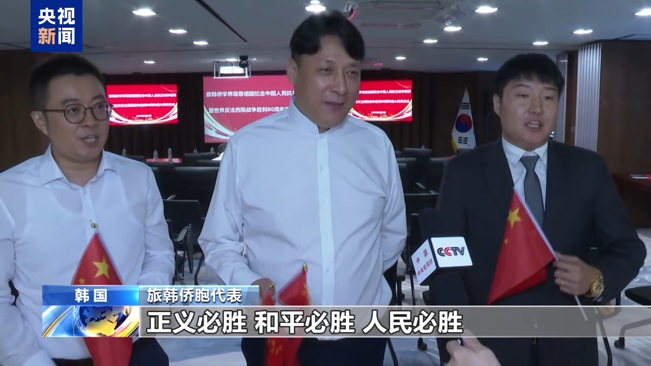 旅韓僑胞代表:我們堅信在習(xí)近平主席的英明領(lǐng)導(dǎo)下,正義必勝、和平必勝、人民必勝。