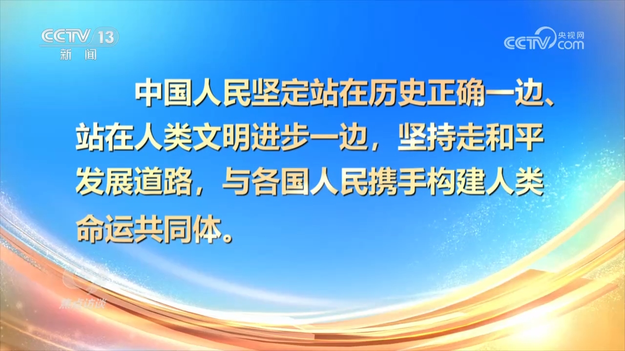 楊鳳城:“這就是總書記的時代站位,這個時代站位從國內(nèi)來講,就是立足于中華民族復(fù)興進(jìn)入不可逆轉(zhuǎn)的歷史進(jìn)程。我們要排除干擾,凝心聚力,以中國式現(xiàn)代化來實現(xiàn)強國目標(biāo);另外一個站位就是寬闊的國際視野,全球視野,構(gòu)建人類命運共同體,這是世界各國都應(yīng)該聚力的目標(biāo)。所以和平發(fā)展、普遍繁榮、共同安全、持久和平,需要世界各國共同努力,中國會在其中起關(guān)鍵性作用。”