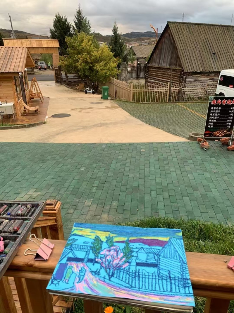 夕陽西下,余暉為鐵熱克提鄉(xiāng)染上一層溫暖金色。正值“丹青墨彩助力鄉(xiāng)村振興”全國名家赴阿勒泰地區(qū)采風(fēng)寫生活動在此開展,新疆畫院畫家徐江峰立于村頭,畫板上木屋錯落、遠(yuǎn)山如黛,“這些木屋依地勢而建,高低起伏,極富節(jié)奏,是最入畫的題材。它們不僅體現(xiàn)人與自然的和諧,更承載著這片土地團(tuán)結(jié)向上的生活氣息?!?/p>