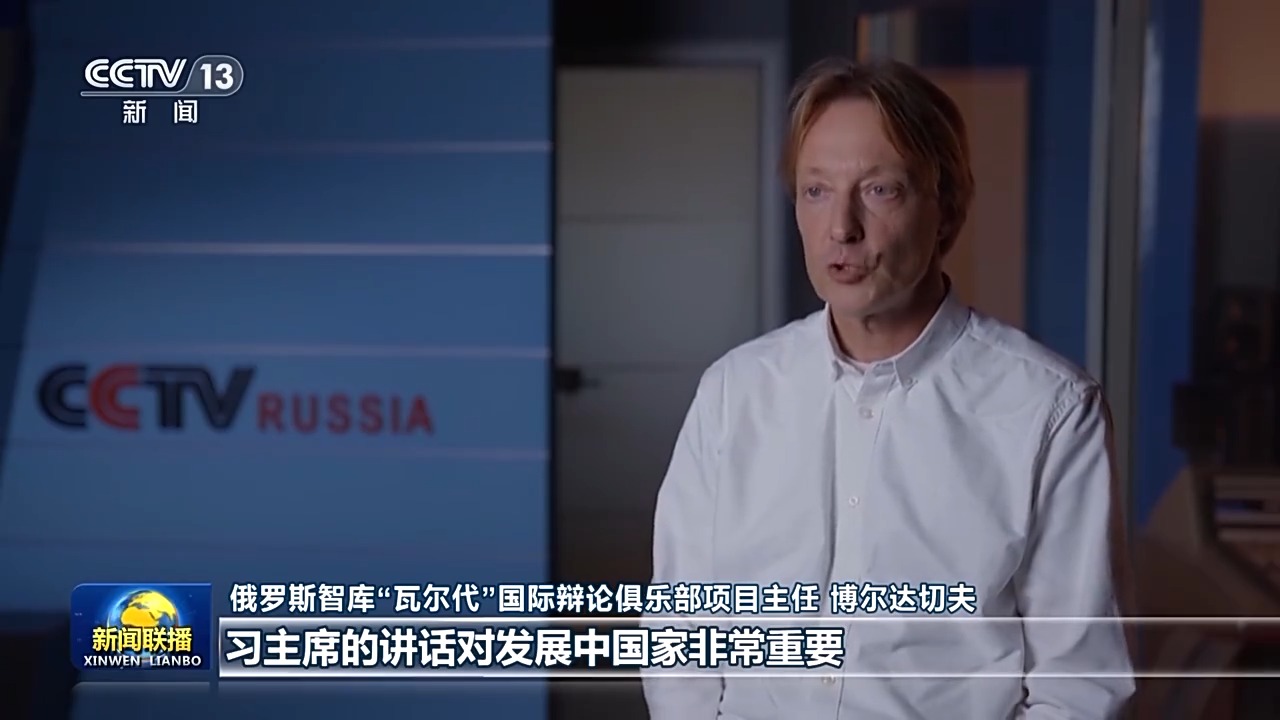 俄羅斯智庫(kù)“瓦爾代”國(guó)際辯論俱樂(lè)部項(xiàng)目主任 博爾達(dá)切夫:習(xí)主席的講話對(duì)發(fā)展中國(guó)家非常重要,當(dāng)前的動(dòng)蕩形勢(shì)給發(fā)展中國(guó)家?guī)?lái)挑戰(zhàn),只有開(kāi)放合作的國(guó)際環(huán)境,才有助于世界各國(guó)的發(fā)展,當(dāng)下我們正處于歷史的轉(zhuǎn)折點(diǎn),迫切需要全球治理倡議,這一倡議是對(duì)全球的重大貢獻(xiàn)。