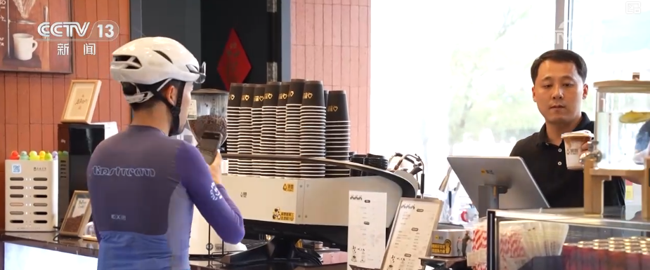 北京某騎行商店負(fù)責(zé)人宋先生介紹,他們配備了餐飲、咖啡,包括休閑區(qū)域,給整個騎行的騎友打造了一個全場景的休閑區(qū)域。