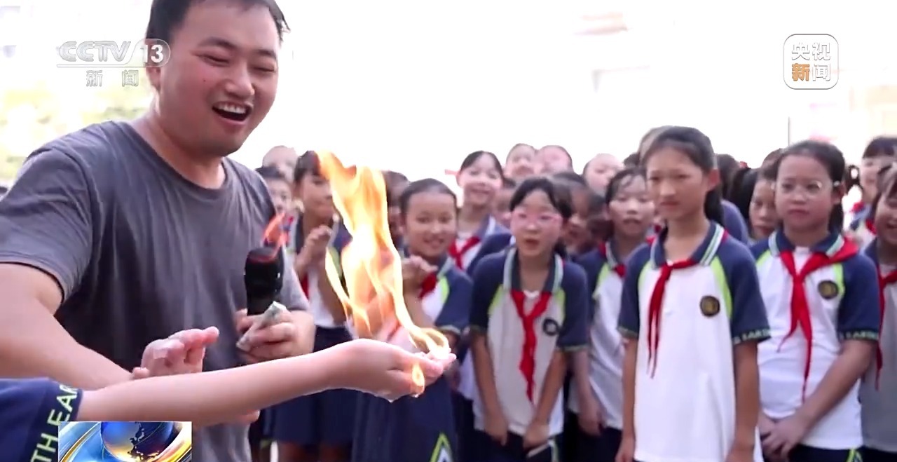 在“科技魔法秀體驗”區(qū),“火焰掌”表演讓同學們親身感受化學反應的奇妙。這個看似“魔法”的現(xiàn)象,實則蘊含著燃燒條件、導熱材料等科學原理。
