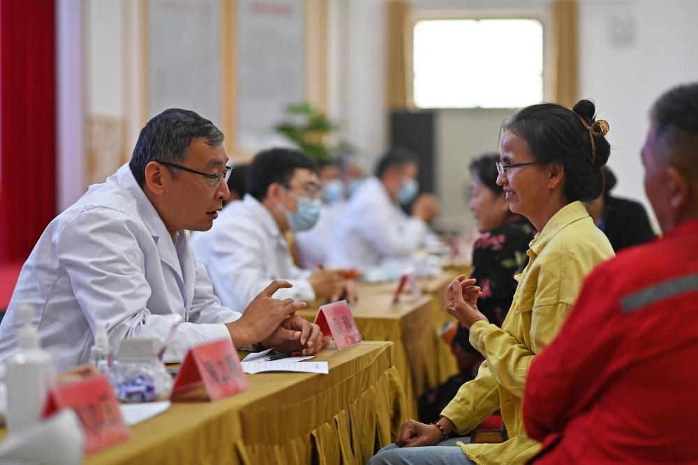 9月19日,鐵門關市人民醫(yī)院醫(yī)生在達西村為村民義診。