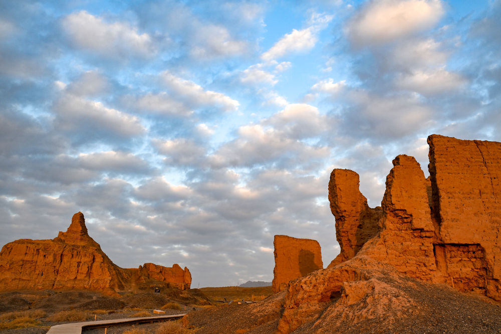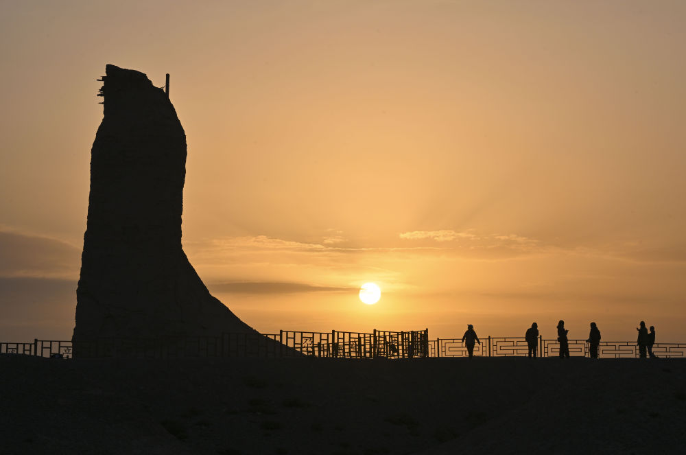 “克孜爾尕哈”意為“紅色哨卡”。夕陽下,這座漢代軍事設(shè)施的夯土墻體被映照得棱角分明,泛著淡淡的金紅色。“站在這里,仿佛看到了當(dāng)年的烽火傳訊?!币幻慰透锌卣f。
