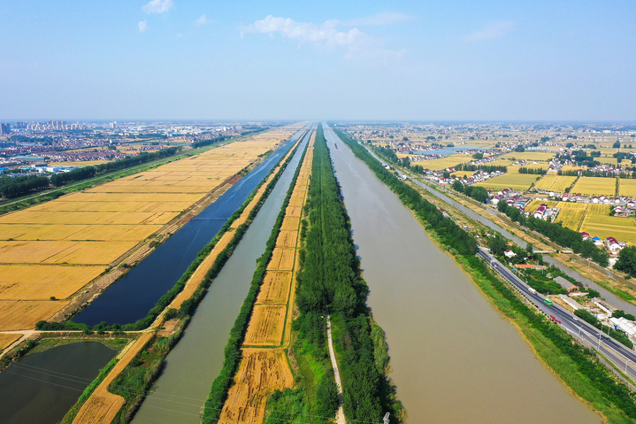 蘇北灌溉總渠(左)與淮河入海水道(右)