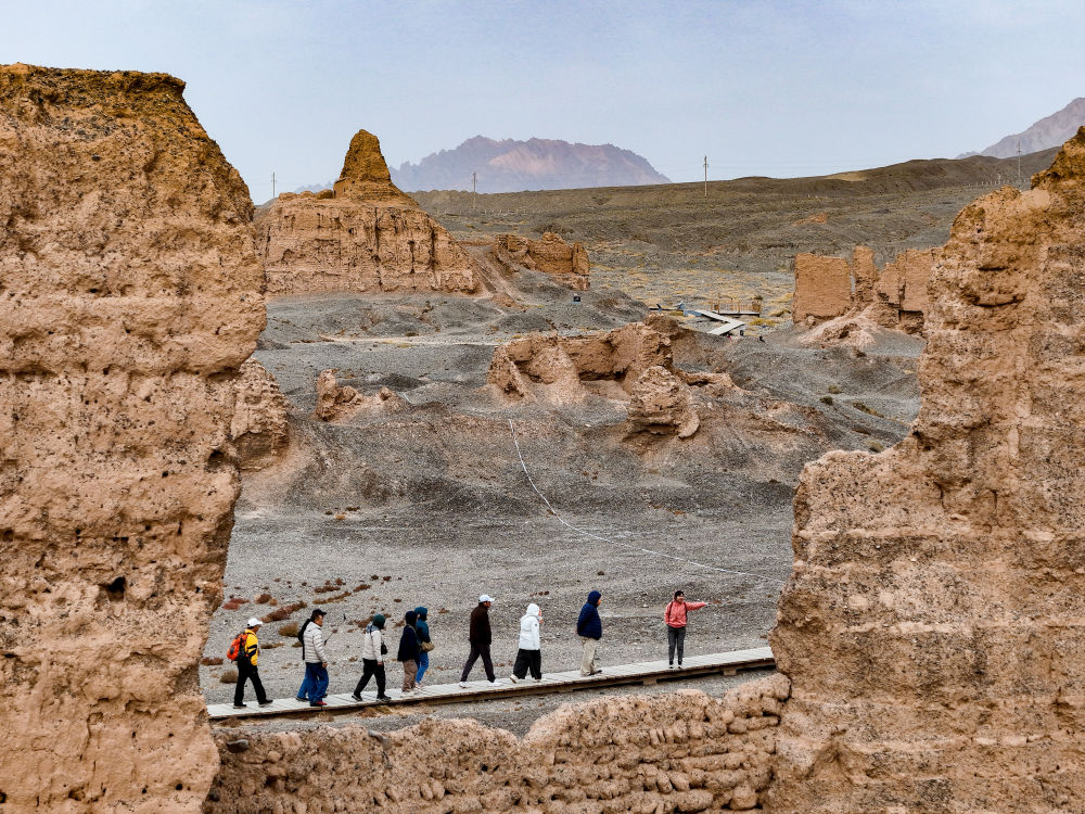 “克孜爾尕哈”意為“紅色哨卡”。夕陽下,這座漢代軍事設(shè)施的夯土墻體被映照得棱角分明,泛著淡淡的金紅色?!罢驹谶@里,仿佛看到了當(dāng)年的烽火傳訊。”一名游客感慨地說。