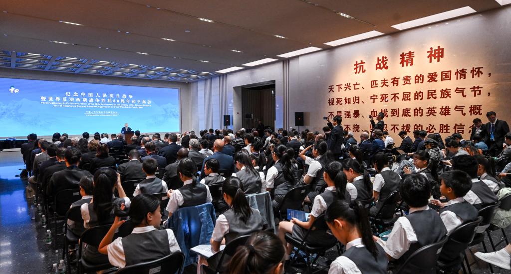 9月26日,參會代表在中國人民抗日戰(zhàn)爭紀念館參加紀念中國人民抗日戰(zhàn)爭暨世界反法西斯戰(zhàn)爭勝利80周年和平集會。 新華社記者 陳曄華 攝