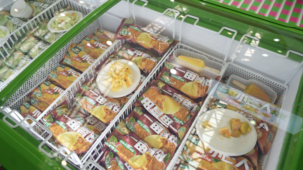 在東北大板品牌展區(qū),蜜瓜、芒果、百香果造型的水果味冰淇淋吸引了眾多客商品嘗,該系列產品遠銷新西蘭、加拿大、馬來西亞、新加坡等國家和地區(qū)。