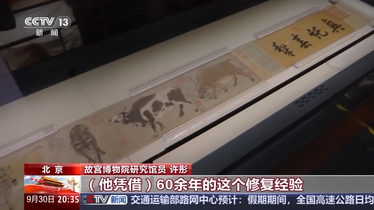 故宮博物院研究館員 許彤:它上面大小破洞應(yīng)該有300多處,非常殘破。后來(lái),修復(fù)專家孫承枝老師憑借其60余年的修復(fù)經(jīng)驗(yàn),通過(guò)揭裱、修補(bǔ)、全色又重裝,最終讓國(guó)寶重光,獲得新生。
