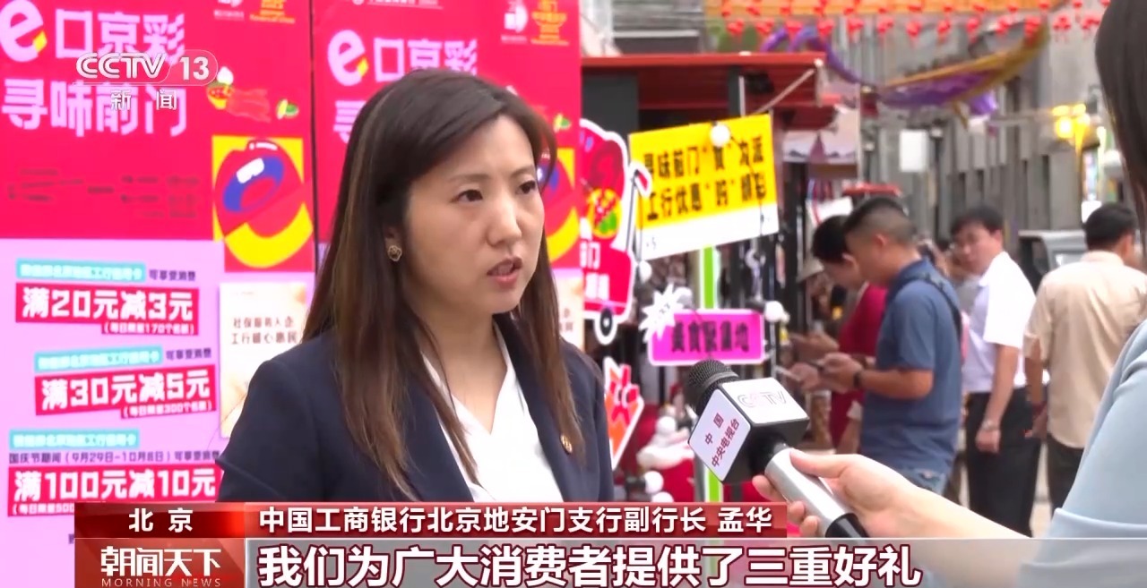 中國工商銀行北京地安門支行副行長 孟華:我們?yōu)閺V大消費(fèi)者提供了三重好禮,除了傳統(tǒng)的消費(fèi)滿減活動以外,我們還疊加了數(shù)字人民幣的優(yōu)惠支付,同時還設(shè)計(jì)了數(shù)字人民幣的打卡活動。