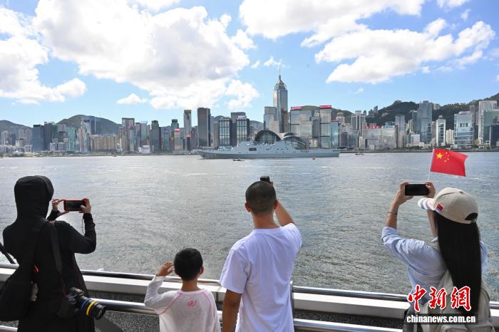 10月3日,海軍戚繼光艦、沂蒙山艦編隊(duì)完成出航前的各項(xiàng)準(zhǔn)備工作,駛離香港海域,前往柬埔寨、泰國、新加坡三國。尖沙咀碼頭有民眾送別海軍戚繼光艦、沂蒙山艦編隊(duì)。圖為民眾在尖沙咀碼頭拍攝海軍沂蒙山艦。 中新社記者 李志華 攝