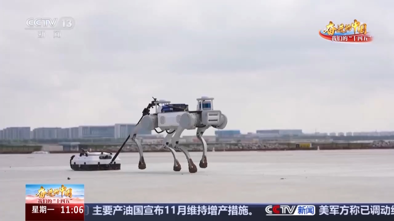 總臺(tái)記者 侯瀟揚(yáng):我身旁這臺(tái)正在勻速“邁步”的設(shè)備,就是民航業(yè)內(nèi)首臺(tái)探地雷達(dá)機(jī)器狗。它搭載設(shè)備可以一邊走一邊向地下發(fā)射雷達(dá)波,能夠有效識(shí)別3米內(nèi)的脫空、裂縫和地下管線(xiàn),比人工探測(cè)效率高不少。不僅可以在既定路線(xiàn)內(nèi)實(shí)現(xiàn)自動(dòng)化探測(cè),就連人難到、車(chē)難行的綠化草地和土面區(qū),它也能靈活穿梭。
