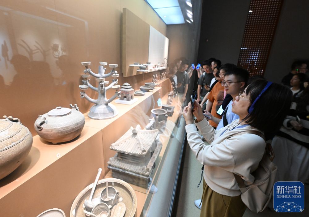↑ 10月6日,游客在長(zhǎng)沙簡(jiǎn)牘博物館參觀。新華社記者 陳振海 攝