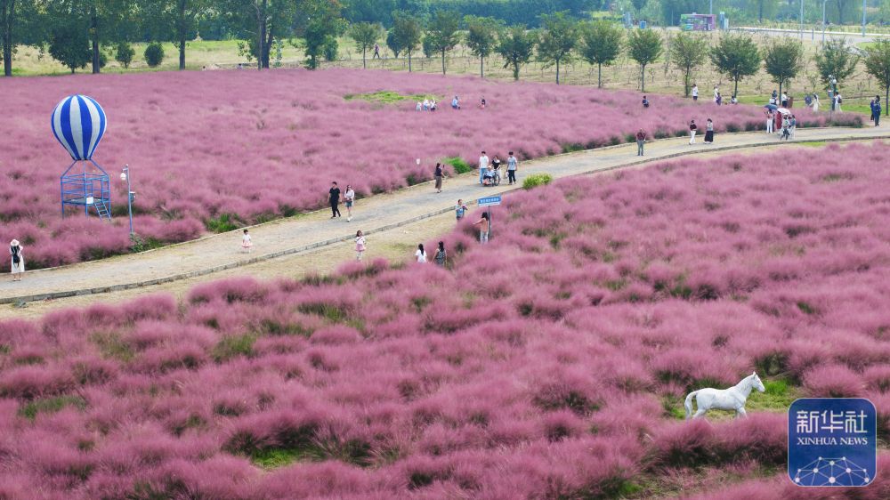 ↑ 10月5日,人們?cè)谀暇┌素灾弈吧匣ǘ捎瓮妫o人機(jī)照片)。新華社發(fā)(蘇陽攝)