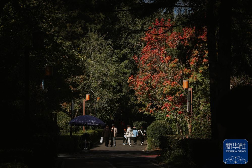 ↑ 10月5日,人們?cè)谀暇┲猩搅昃皡^(qū)游覽。新華社記者 李賀 攝