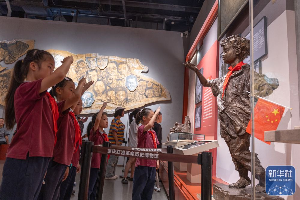 ↑ 10月6日,來自渝北巴蜀小學(xué)二年級(jí)九班的同學(xué)們?cè)谥貞c歌樂山革命紀(jì)念館參觀。新華社記者 陳誠(chéng) 攝