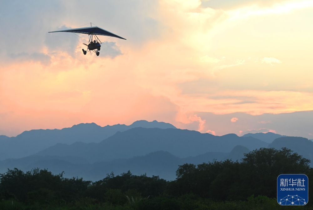 ↑ 10月6日,游客在浙江省金華市武義縣大斗山飛行營(yíng)地乘坐動(dòng)力三角翼。新華社發(fā)(張建成攝)