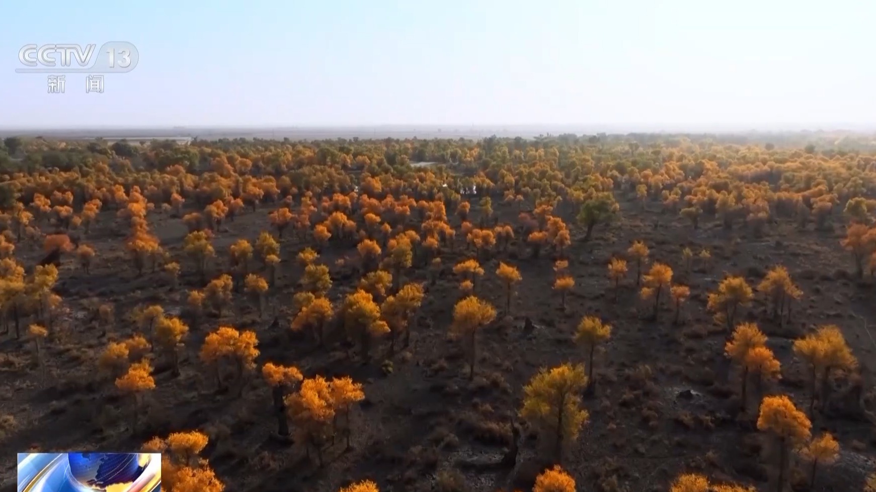 總臺記者 周宇:新疆沙雅縣擁有著全世界面積最大的野生胡楊林。這里的胡楊林進入了最佳的觀賞時期。當我們走近胡楊,會發(fā)現同一棵樹上擁有著不同形狀的葉子: