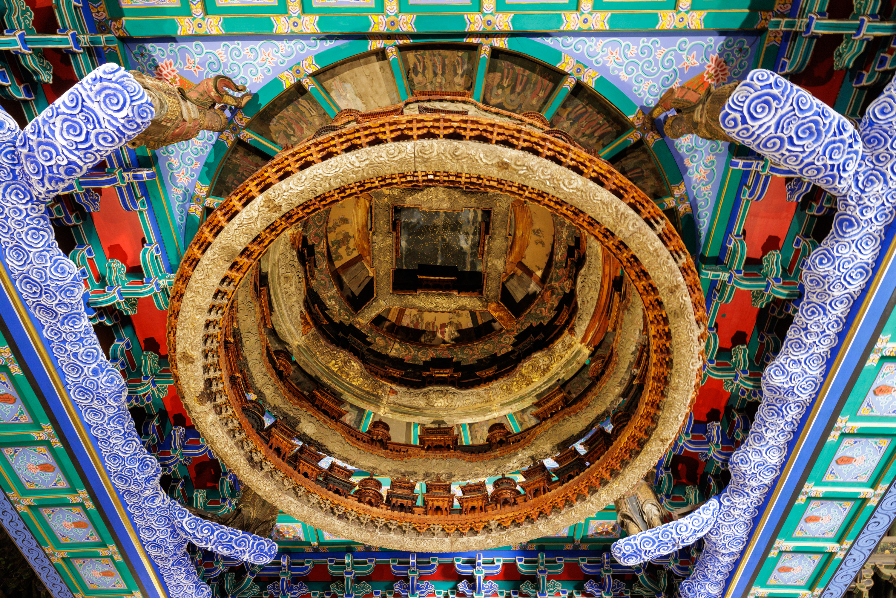 萬善正覺殿天宮藻井是國家一級文物,原為北京隆福寺的建筑構(gòu)件,受1976年地震影響被拆成散件,后被運到北京古代建筑博物館保存,經(jīng)過長達5年的修復(fù)才基本恢復(fù)原貌,是北京古代建筑博物館的鎮(zhèn)館之寶。