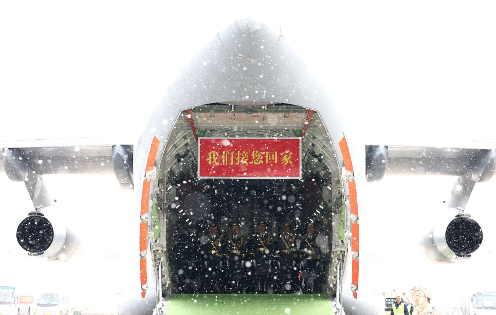 2023年11月23日,第十批在韓中國人民志愿軍烈士遺骸抵達沈陽桃仙國際機場。新華社記者 曹燦 攝