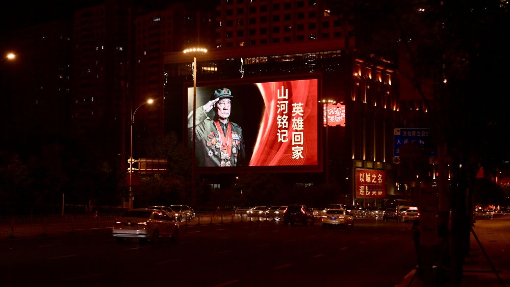9月10日在沈陽拍攝的戶外電子屏。新華社記者 吳青昊 攝