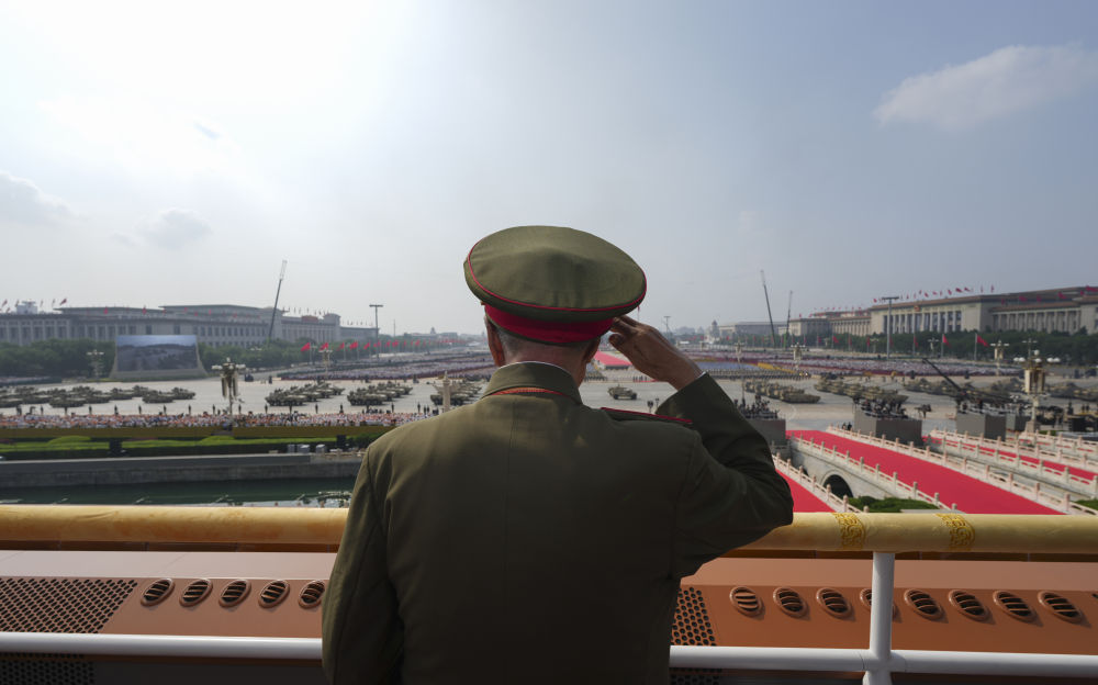 9月3日,紀念中國人民抗日戰(zhàn)爭暨世界反法西斯戰(zhàn)爭勝利80周年大會在北京隆重舉行。這是觀禮嘉賓在天安門城樓上敬禮。新華社記者 才揚 攝