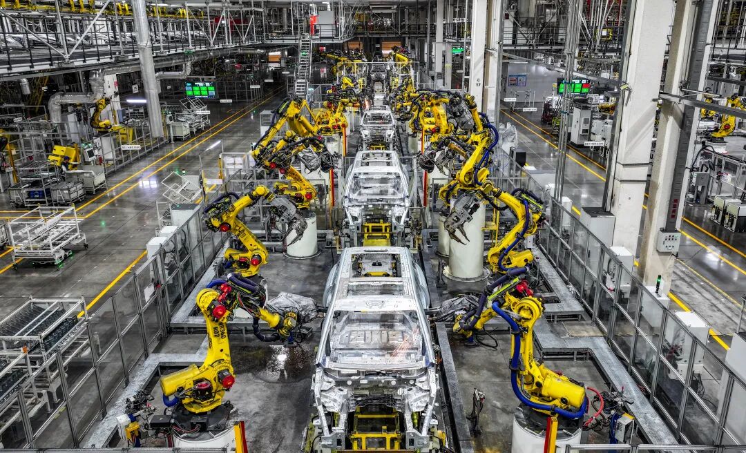 位于重慶市兩江新區(qū)的賽力斯汽車超級工廠拍攝的自動化生產(chǎn)作業(yè)現(xiàn)場。 新華社記者 王全超 攝