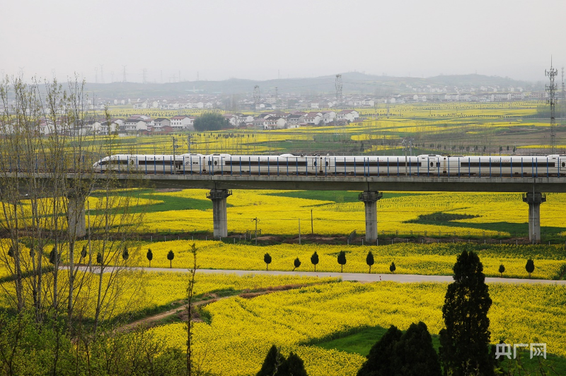 鋼鐵長(zhǎng)龍?jiān)诨洊|大地上畫出優(yōu)美弧線,它勾勒出一條通向均衡發(fā)展、文化自信、民生幸福的未來之路。軌道延伸之處,山河煥然一新,城鄉(xiāng)共舞,這就是中國(guó)鐵路所承載的,最磅礴、最溫暖的時(shí)代之美。