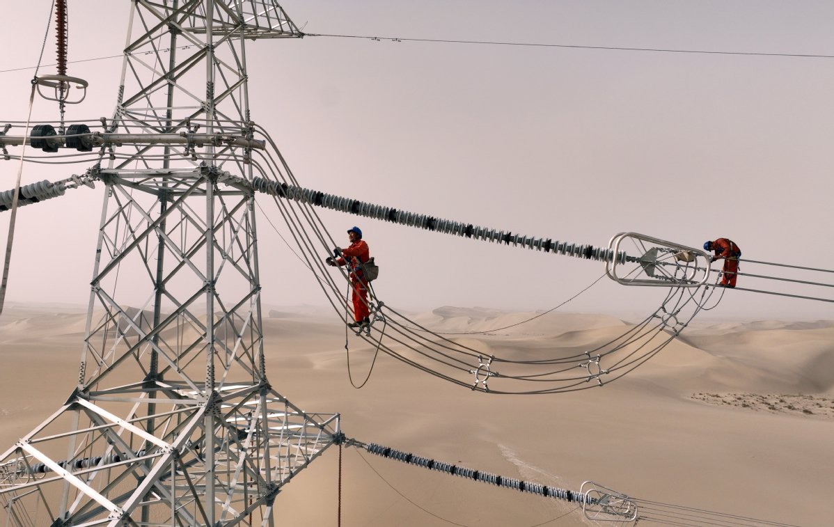 這一超級工程的建設(shè)歷程,是一場與“死亡之海”的持續(xù)較量。工程線路近半位于我國最大沙漠——塔克拉瑪干沙漠腹地,年均降水量僅約50毫米,蒸發(fā)量卻超2500毫米,全年三分之一為風沙日,極端天氣下狂風可掀起數(shù)米高的沙墻,自然環(huán)境極其惡劣。15年間,數(shù)萬名電網(wǎng)建設(shè)者扎根沙漠,在5000多個日夜中攻克多項世界級施工難題,用堅守書寫“沙退人進”的奇跡。