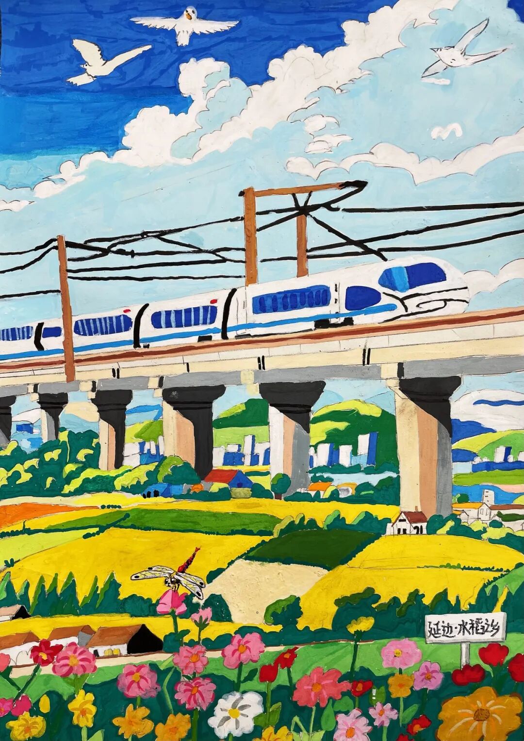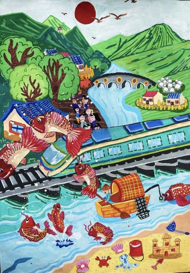 去年暑假,我和爸爸媽媽坐上普速列車去南京看望大爺爺。車窗外,九龍口濕地的蘆葦叢像綠色的波浪,成群的白鷺貼著水面掠過,偶爾還能看見漁民撐著小船在河道里穿梭。建湖特有的水鄉(xiāng)風光漸漸后退,“哐當哐當”的車輪聲卻越來越清晰,仿佛是西塘河的流水聲化作了鋼軌上的旋律。鄰座的老爺爺笑著給我講起故事:“以前去南京,要先坐小船到碼頭,再轉(zhuǎn)汽車。現(xiàn)在火車直接開到家門口,建湖和外面的世界更近啦!”他布滿皺紋的手輕輕摸著車窗,眼睛里閃著光。