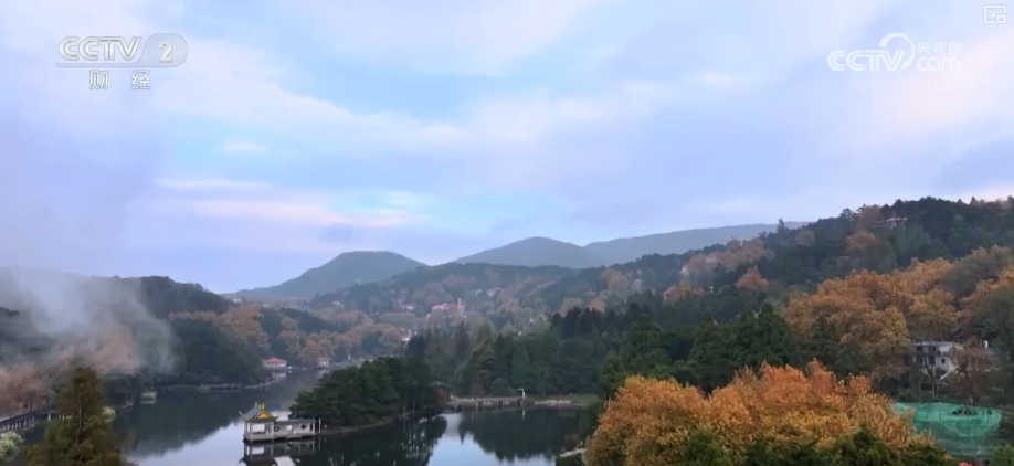11月的廬山,秋色漸濃,風景如畫。高空俯瞰,如琴湖畔,梧桐葉黃、雞爪槭紅。山霧隨風而起,半遮半掩,色彩斑斕的秋天景色若隱若現(xiàn),倒映在湖中如夢如幻。眾多游客紛至沓來,登山賞景、打卡留念。