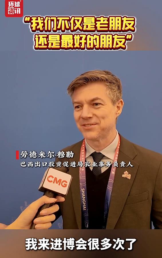 巴西出口投資促進局農(nóng)業(yè)事務(wù)負(fù)責(zé)人勞德米爾·穆勒接受總臺環(huán)球資訊廣播記者采訪時表示,巴西每年都積極參與進博會,不僅是進博會的老朋友,更是最好的朋友。