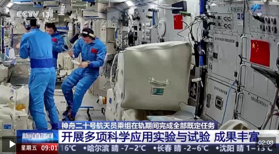在軌期間,神舟二十號(hào)展開(kāi)了覆蓋空間生命科學(xué)、微重力基礎(chǔ)物理、空間材料科學(xué)、航天醫(yī)學(xué)、航天新技術(shù)等領(lǐng)域,取得了階段性成果。典型成果包括: