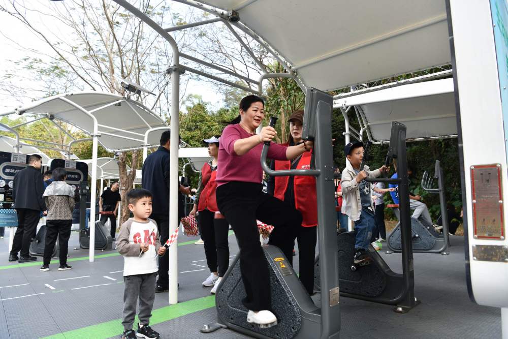 2024年1月20日,市民在深圳蓮花山公園西區(qū)室外智能健身房參加競(jìng)賽活動(dòng)。新華社記者 梁旭攝