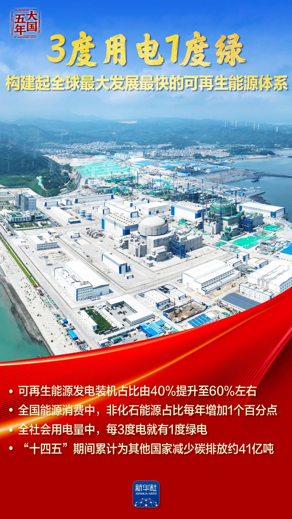 全社會(huì)用電量中,每3度電就有1度綠電;風(fēng)電光伏裝機(jī)歷史性超過火電,新能源發(fā)電增量占全國(guó)新增發(fā)電量近一半;全國(guó)統(tǒng)一電力市場(chǎng)加快構(gòu)建,塞北的風(fēng)點(diǎn)亮灣區(qū)的燈……“十四五”期間,我國(guó)能源建設(shè)逐“綠”向“新”,筑牢能源安全的堅(jiān)實(shí)底座,繪就民生幸福的溫暖底色,夯實(shí)“雙碳”目標(biāo)的實(shí)現(xiàn)基礎(chǔ)。