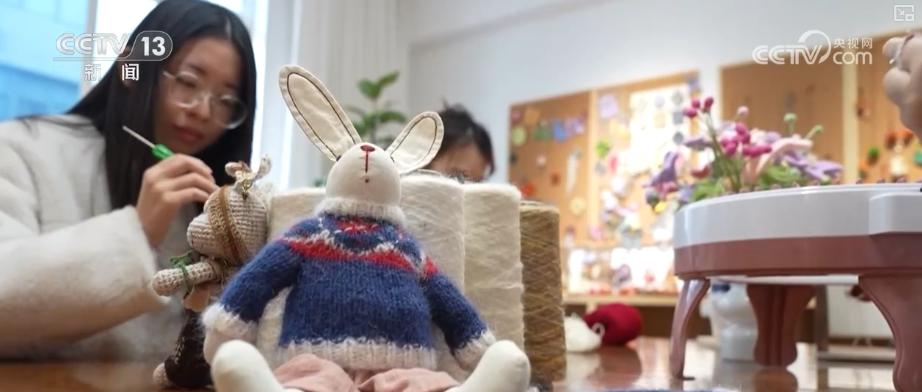 據(jù)了解,不少課程的參與者還會(huì)復(fù)購(gòu)毛線材料包,帶回家自主設(shè)計(jì)創(chuàng)作。