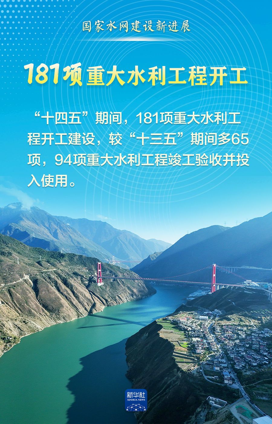 江河安瀾,治水興邦。“十四五”期間,全國(guó)完成水利建設(shè)投資5.68萬(wàn)億元、181項(xiàng)重大水利工程開(kāi)工建設(shè)、國(guó)家水網(wǎng)覆蓋范圍占國(guó)土面積的比例達(dá)80.3%……一項(xiàng)項(xiàng)豐碩成果,既勾勒出清水綠岸、魚(yú)翔淺底的生態(tài)畫(huà)卷,更織密守護(hù)萬(wàn)家燈火的水安全保障網(wǎng),為經(jīng)濟(jì)社會(huì)高質(zhì)量發(fā)展注入強(qiáng)勁動(dòng)能。