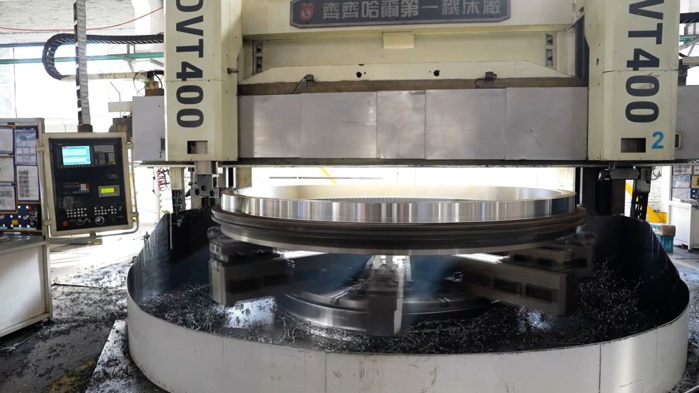 在洛軸集團(tuán)風(fēng)電軸承生產(chǎn)車(chē)間,一排排機(jī)床正井然有序地加工著一批風(fēng)電偏航軸承。