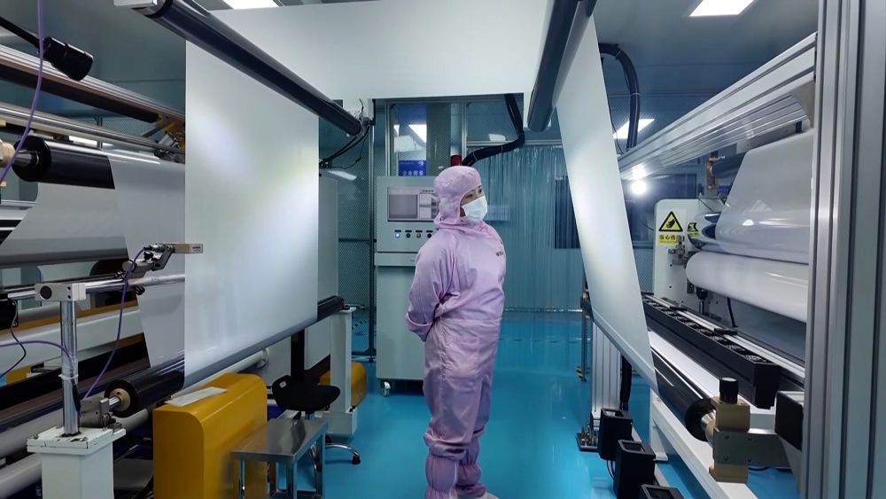 在園區(qū)內(nèi)的湖南壹鑫科技有限公司無(wú)塵生產(chǎn)車(chē)間,光學(xué)薄膜自動(dòng)化生產(chǎn)線正滿負(fù)荷運(yùn)轉(zhuǎn)。