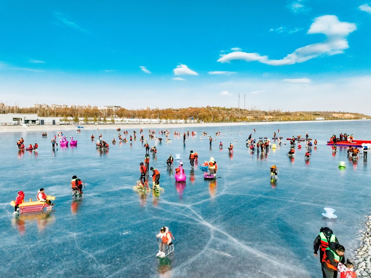 在榆林市科創(chuàng)新城的水上運(yùn)動(dòng)中心,光潔的冰面同樣熱鬧非凡,工作人員正為即將到來(lái)的冰雪嘉年華做最后準(zhǔn)備。項(xiàng)目負(fù)責(zé)人張偉介紹,中心自開放以來(lái),已成為市民和游客體驗(yàn)冰雪樂(lè)趣的重要場(chǎng)所。