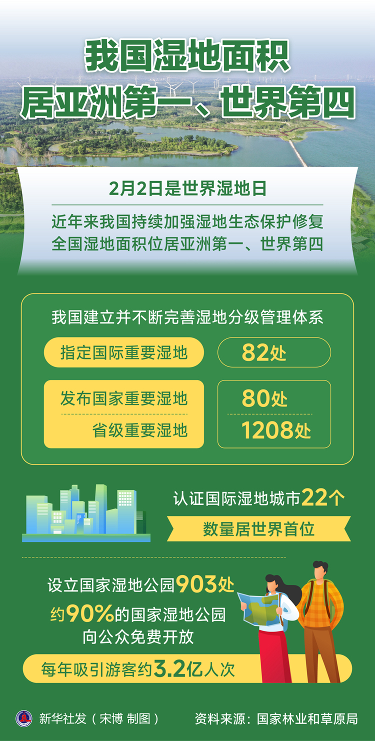 2月2日是世界濕地日。記者當(dāng)天從國家林業(yè)和草原局獲悉,近年來我國持續(xù)加強濕地生態(tài)保護(hù)修復(fù),全國濕地面積位居亞洲第一、世界第四,濕地保護(hù)形成重點治理和分類保護(hù)相結(jié)合的新格局。