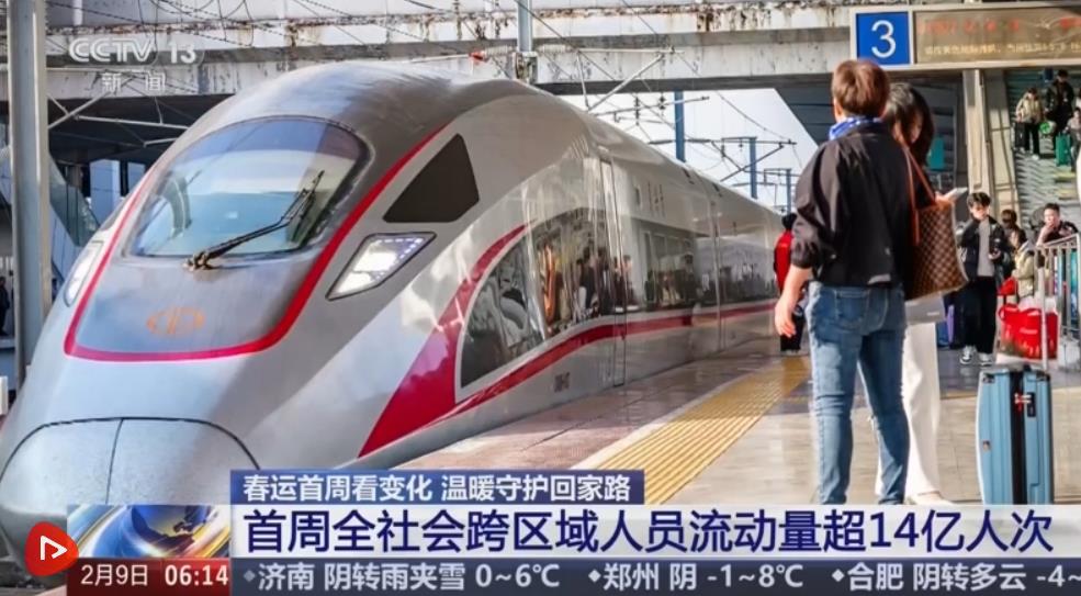 2026年春運(yùn)2月2日拉開帷幕,到2月9日是第八天。據(jù)此前綜合研判的數(shù)據(jù),在今年春運(yùn)40天的時(shí)間里,全社會跨區(qū)域人員流動(dòng)量將會達(dá)到95億人次,預(yù)計(jì)創(chuàng)歷史新高。數(shù)據(jù)顯示,春運(yùn)首周,預(yù)計(jì)全社會跨區(qū)域人員流動(dòng)量累計(jì)超14億人次,日均超2億人次,比去年同期增長2%。交通運(yùn)輸部預(yù)計(jì),2月14日前后將達(dá)到春節(jié)前客流峰值。