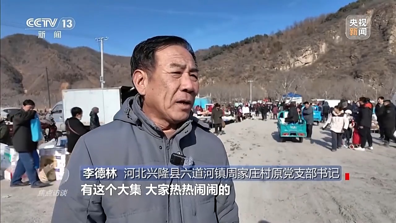 河北興隆縣六道河鎮(zhèn)周家莊村原黨支部書記 李德林:有這個(gè)大集,大家熱熱鬧鬧的,相互在這兒能見個(gè)面。農(nóng)村的大集和廟會(huì)就起這個(gè)作用,大家能見個(gè)面,買點(diǎn)東西也方便,人氣就上來了。