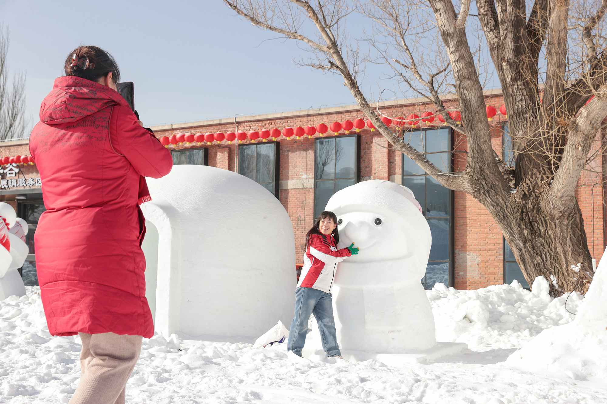 北京延慶,市民長城腳下過小年