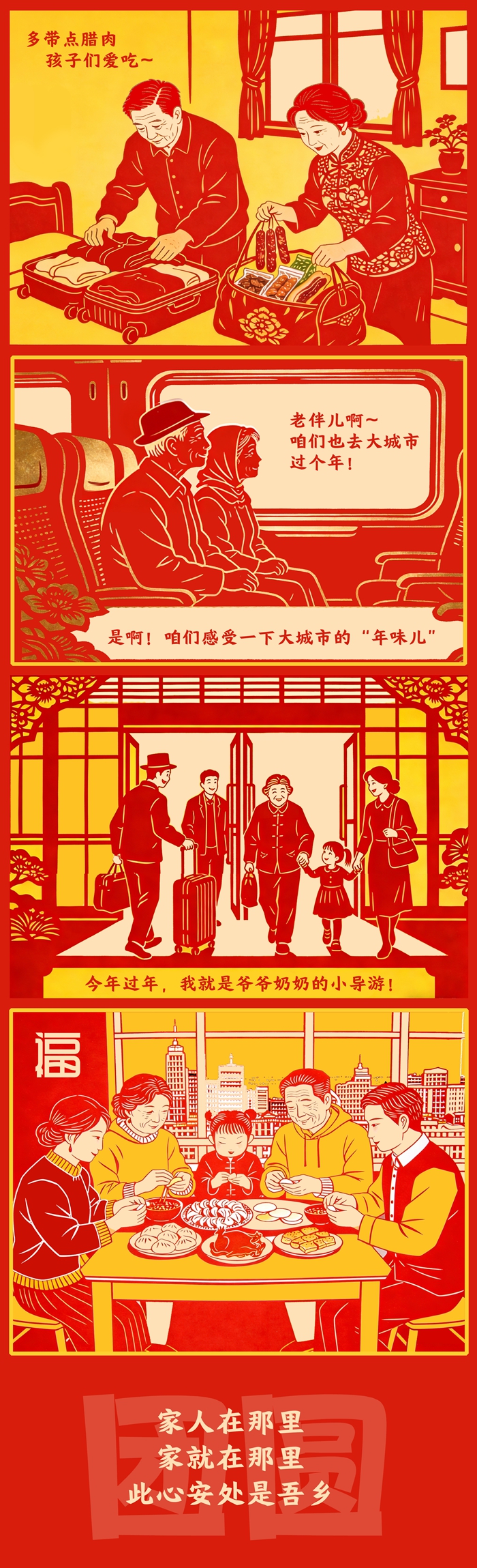 反向春運(yùn),遠(yuǎn)不止出行方式之變,它見(jiàn)證著中國(guó)人對(duì)“家”的理解,從故土坐標(biāo)轉(zhuǎn)向親情紐帶。變的,是團(tuán)圓路徑的智慧選擇;不變的,是對(duì)親情的永恒珍視。一個(gè)充滿活力的現(xiàn)代社會(huì),正以其包容與溫度,為每一種真摯奔赴鋪就道路。流動(dòng)中國(guó)的底色是團(tuán)圓,動(dòng)力是親情,終點(diǎn)永遠(yuǎn)是家之所在。(文字/泰軒萍 漫畫/泰軒萍 編輯/喬佳新)