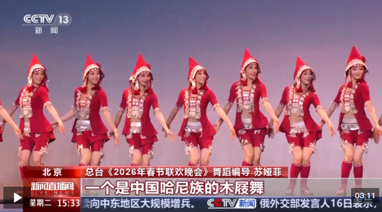 總臺《2026年春節(jié)聯(lián)歡晚會(huì)》舞蹈編導(dǎo) 蘇婭菲:這次的作品中有中國的兩個(gè)不同的舞種,一個(gè)是哈尼族的木屐舞,一個(gè)是中國傈僳族的阿尺木刮,它也是國家級非遺。還有兩支來自國外不同的團(tuán)隊(duì),一個(gè)來自匈牙利,表演的是匈牙利的萊蓋涅什,是他們的傳統(tǒng)民族舞蹈,一個(gè)是西班牙的一支舞蹈團(tuán),表演的就是弗拉門戈。