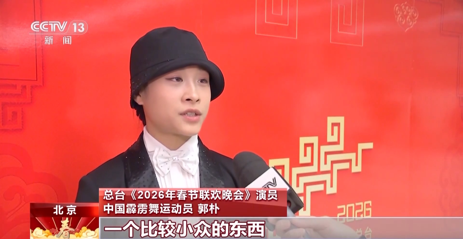 總臺《2026年春節(jié)聯(lián)歡晚會(huì)》演員 中國霹靂舞運(yùn)動(dòng)員 郭樸:這次在節(jié)目當(dāng)中做得最多的就是霹靂舞里面的一些技巧難度動(dòng)作,這是我第一次參加央視春晚,在春晚當(dāng)天讓大家看到霹靂舞,很開心,因?yàn)榕Z舞算是一個(gè)比較小眾的東西,它可以帶到全國人民的眼前,這個(gè)機(jī)會(huì)很難得。